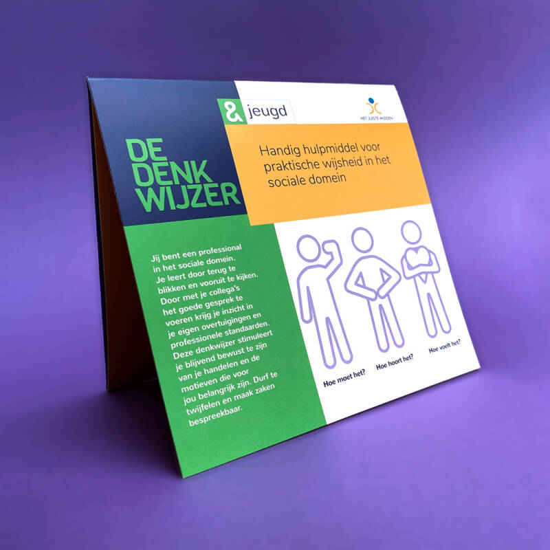 Je leert als professional door terug te blikken en vooruit te kijken. Door met je collega’s het goede gesprek te voeren krijg je inzicht in je eigen overtuigingen en professionele standaarden. De denkwijzer stimuleert je aan de hand van een aantal overzichtelijke stappen bewust te zijn van je handelen en de motieven die voor jou belangrijk zijn. Durf te twijfelen en maak zaken bespreekbaar.